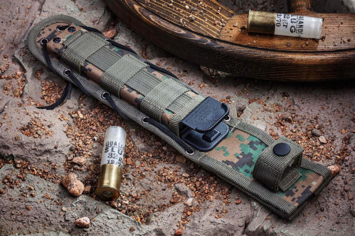 这些刀具配有适用于 MOLLE 固定系统的刀鞘。
