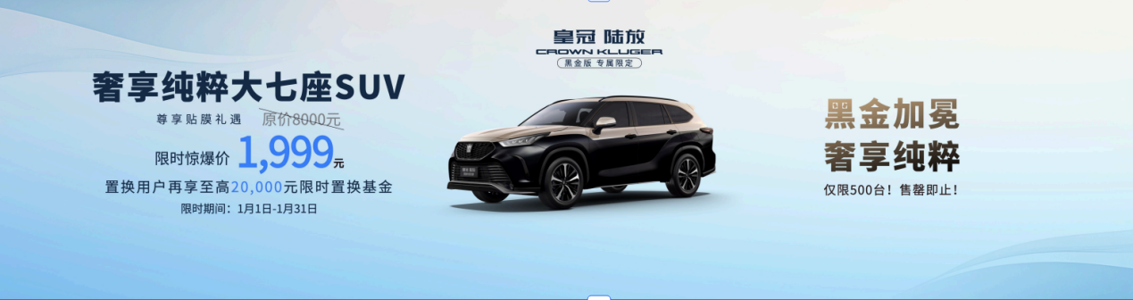 本次大会上,一汽丰田汽车销售有限公司副总司理 窦绘娟女士还发布了SUV家眷各主力车型的限时购车策略,优惠直给,力度权臣。