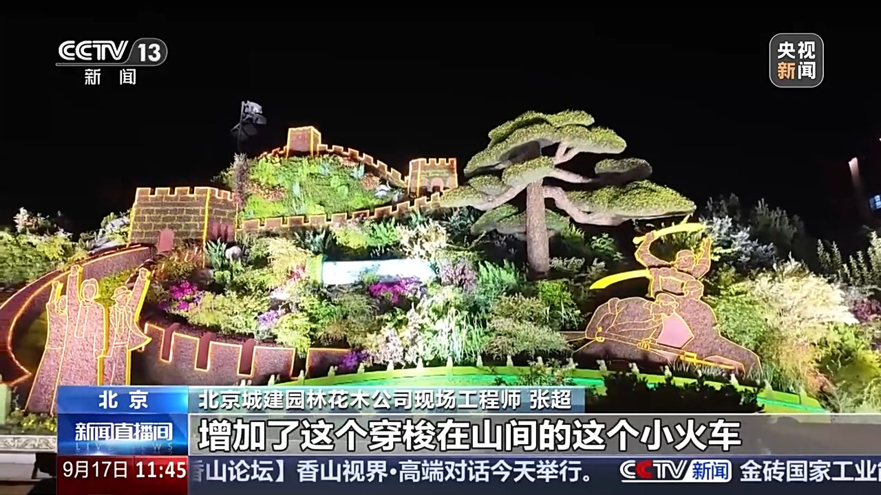 北京城建园林花木公司现场工程师 张超:在这次这个施工流程中,咱们将会有67个新优品种和乡土植物在长安街花圃当中初次亮相。从驰念步履到国庆,花草打发是有机连结的,对元素进行更换,景不雅进行调理,比如说黄河颂歌花圃调理了之前的《黄河大齐唱》的音乐,更换为《我和我的故国》,锦绣乾坤花圃,加多了穿梭在山间的这个小火车。