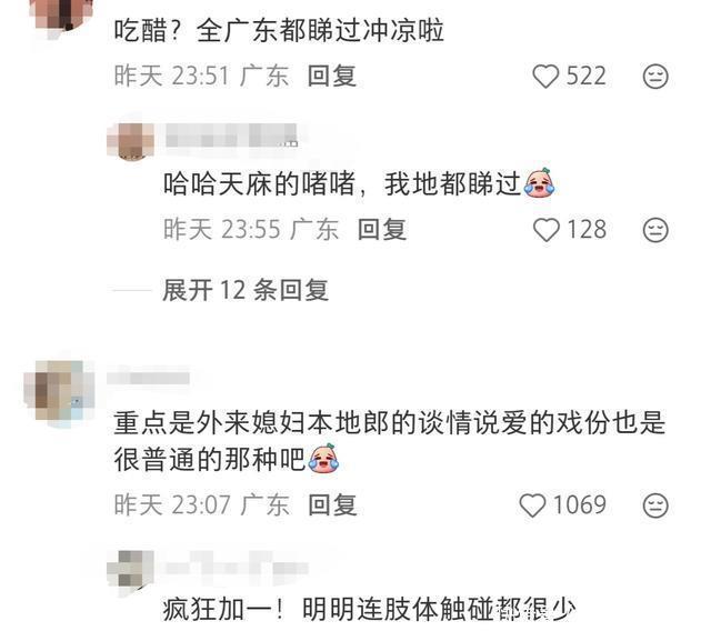 对此,好多东谈主默示不睬解:“嫉恨?全广东王人看过冲凉啦”、“打情骂趣的戏份亦然很平凡的那种吧”、“广东东谈主有我方的包文婧”、“若是简直是这样挺阿谁的,第一他是个演员,除非他不作念演员了(难怪目下专注音乐行业),第二外剧王人是家庭剧,也莫得什么很亲密的戏份吧”。
