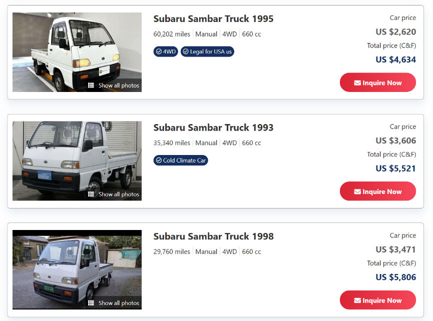 某二手网站上斯巴鲁Sambar报价▼