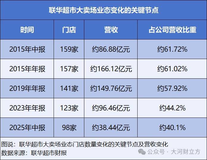 世纪联华郑州橄榄城店篡改发生在2014年,寰宇网购消耗爆发,实体商企靠近冲击,世纪联华也未避免。从近10年财报中看到,其母公司大卖场(世纪联华品牌)数目在2015年中期达到峰值,为159家(2015年中报数据),而后捏续优化篡改,至2025年上半年剩余98家。同期,其大卖场功绩从2013年岑岭约182.35亿元降至2024年约82.05亿元,降幅卓著50%。