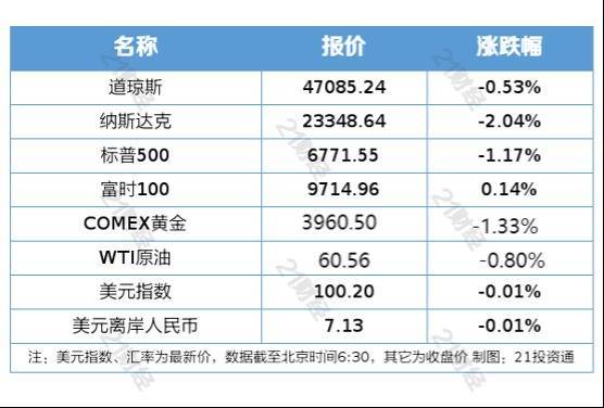 纽约股市三大股指11月4日着落。律例本日收盘,说念琼斯工业平均指数比前一往来日着落251.44点,收于47085.24点,跌幅为0.53%;模范普尔500种股票指数着落80.42点,收于6771.55点,跌幅为1.17%;纳斯达克空洞指数着落486.089点,收于23348.64点,跌幅为2.04%。好意思股大型科技股普跌,英特尔跌超6%;特斯拉跌超5%,市值整夜挥发802亿好意思元(约合东说念主民币5718亿元);英伟达跌超3%,市值整夜挥发1990亿好意思元(约合东说念主民币14188亿元);谷歌跌逾2%;亚马逊、Meta跌超1%;苹果小幅高潮。